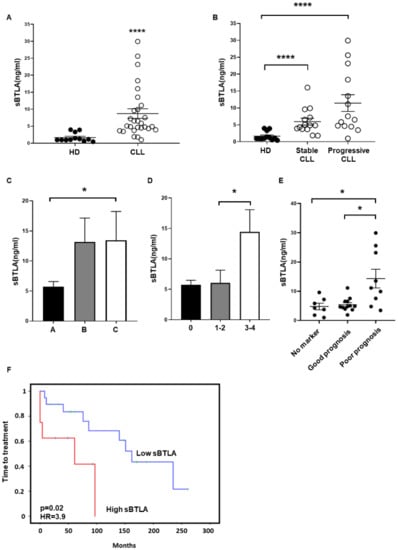 2.6. Determination of Soluble BTLA on the Sera of Patients with CLL