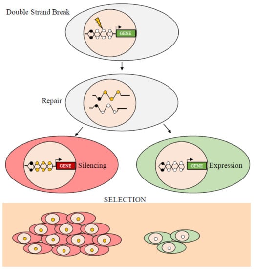 - Morano, A.; Angrisano, T.; Russo, G.; Landi, R.; Pezone, A.; Bartollino, S.; Zuchegna, C.; Babbio, F.; Bonapace, I.M.; Allen, B.; et al. Targeted DNA methylation by homology-directed repair in mammalian cells. Transcription reshapes methylation on the repaired gene. Nucleic Acids Res. 2014, 42, 804–821. [Google Scholar] [CrossRef]