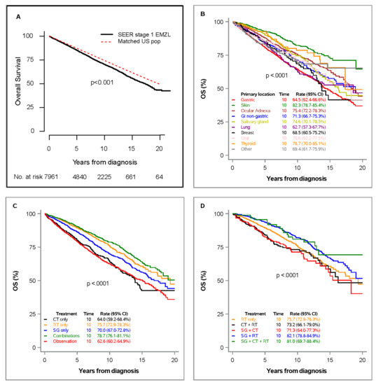 3.2. Overall Survival by Treatment Strategy within EMZL Location Subgroups