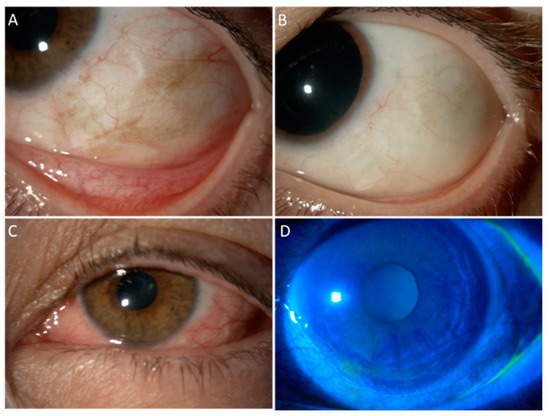 Ocular tumours encompass a wide spectrum of disorders that represent important sight- and life-threatening conditions [1]. The treatments used for uveal and conjunctival tumours can lead to ocular surface complications which if not recognized and treated properly can lead to serious consequences. Uveal melanoma (UM) is the most frequent primary intraocular malignancy in adults. Most cases of UMs are represented by choroidal melanoma, while the remaining lesions arise from the ciliary body and the iris [2,3,4,5,6]. The most common conjunctival cancers are represented by melanocytic lesions and ocular surface squamous neoplasia (OSSN) [7]. Melanocytic tumours include conjunctival naevi, complexion-associated melanosis, ‘primary acquired melanosis’ (PAM), and invasive melanoma [8,9,10,11,12,13]. OSSN includes a broad spectrum of ocular surface neoplastic changes ranging from non-invasive squamous conjunctival intra-epithelial neoplasia to invasive squamous cell carcinoma [14,15].