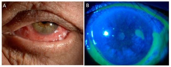 Proton beam radiotherapy is an effective treatment for UM of any size and location. It results in local control of the disease in more than 95% of cases and in a relatively high rate of eye preservation [66,67,68,69,70,71]. Side effects of PBR depend mainly on the size and location of the tumour [72,73,74,75,76,77,78]. Radiation keratopathy represents a possible complication after PBR occurring in 1–11.5% of cases [66,68,78,79]. Decreased corneal sensitivity up to complete anesthesia is a typical early sign of radiation keratopathy [80]. The loss of corneal sensory innervation leads to the impairment of both protective reflexes and epitheliotropic neuromodulators resulting in painless central or marginal corneal ulceration [81]. This complication is also related to the LSCD that occurs in approximately 30% of patients undergoing total anterior segment irradiation [62,77,82]. LSCD can be avoided by harvesting limbal corneal tissue before PBR and transplanting it after irradiation [83,84].