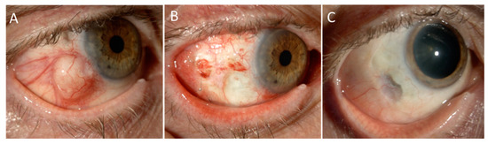 - Erie, J.C.; Campbell, R.J.; Liesegang, T.J. Conjunctival and Corneal Intraepithelial and Invasive Neoplasia. Ophthalmology 1986, 93, 176–183. [Google Scholar] [CrossRef]