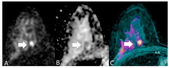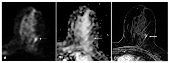 Several studies have demonstrated good sensitivity and specificity in DWI combining b-value sequences and the apparent diffusion coefficient (ADC) map in the detection of breast cancer [14].