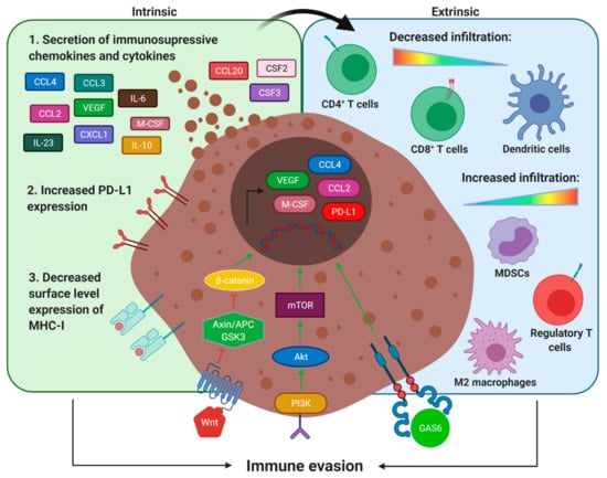 - Yang, L.; Li, A.; Lei, Q.; Zhang, Y. Tumor-intrinsic signaling pathways: Key roles in the regulation of the immunosuppressive tumor microenvironment. J. Hematol. Oncol. 2019, 12, 125. [Google Scholar] [CrossRef] [PubMed]