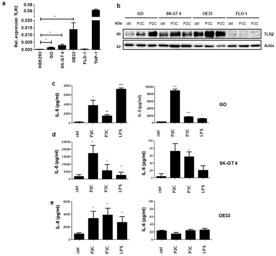 3.1. Cell Lines Derived from Barrett’s Dysplasia and Early Oesophageal Adenocarcinoma Are Responsive to TLR2