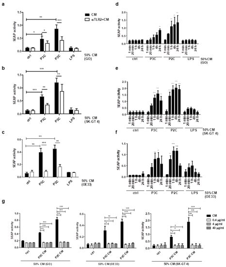 3.4. Secretion of TLR2 Agonists by Oesophageal Cell Lines