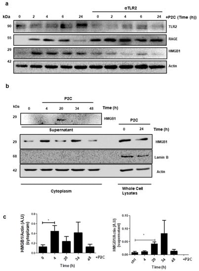 - Yu, M.; Wang, H.; Ding, A.; Golenbock, D.T.; Latz, E.; Czura, C.J.; Fenton, M.J.; Tracey, K.J.; Yang, H. HMGB1 signals through toll-like receptor (TLR) 4 and TLR2. Shock 2006, 26, 174–179. [Google Scholar] [CrossRef]