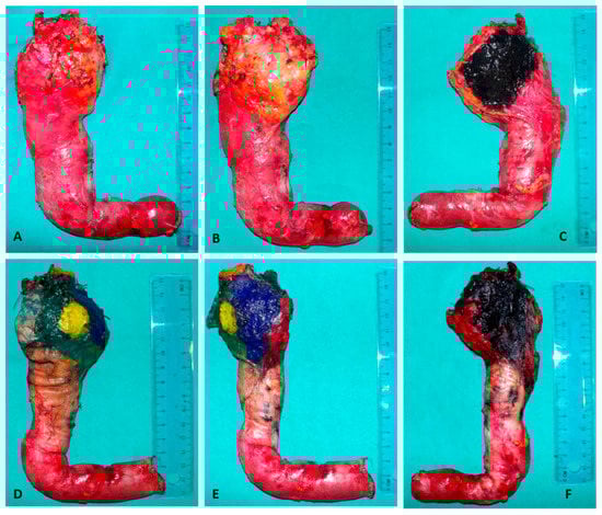 LEEPP has previously been well described in the literature [7]. The main features of the protocol are axial slicing of the specimen, multicolor margin staining, and sampling of the entire specimen [7]. For group B, PD specimens underwent gross anatomical examination according to Rosai-Ackerman’s Surgical Pathology Textbook [12]. This protocol includes the evaluation of all anatomic structures (pancreatic duct, ampulla of Vater, common bile duct, and pancreatic head), without the inclusion of the entire specimen and bivalve slicing of the specimen [12] (Figure 2).