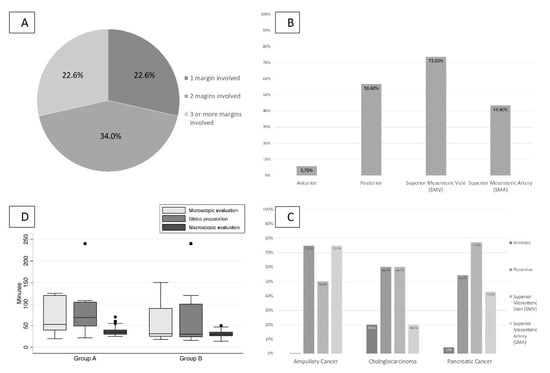 This study has some limitations. Firstly, we included all periampullary cancers, even if our series was composed mostly of PDAC (>70%). Further studies evaluating each specific periampullary cancer are needed. The second limitation was that group B could not be completely homogeneous and differences in the conventional method used between the participating centers may have been present. However, the two most significant aspects of the pathological evaluation (bivalve slicing technique and the absence of the inclusion of the entire specimen) were adopted by each center.