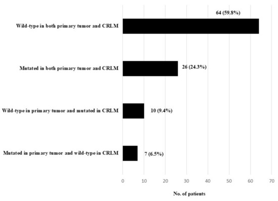 Our study analyzed the results of KRAS mutation analysis performed in a homogenous group of 107 patients, all resected at the same institution for both primary tumor and CRLM. Furthermore, all the specimens of both primary tumor and CRLM were analyzed by the same anatomic pathology unit with the same technique [28,29,30].