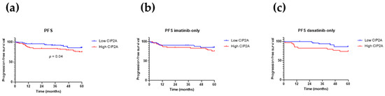 3.2. High CIP2A Is Associated with an Inferior Progression-Free Survival