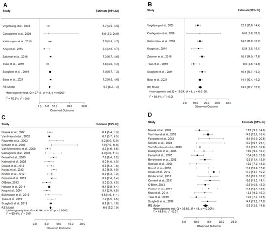 Although recent data from the CheckMate 743 trial have demonstrated improved outcomes with first-line immunotherapy [4], the combination of cisplatin and pemetrexed is commonly utilized in the front-line setting worldwide [5,6]. Carboplatin has similar efficacy to cisplatin, with a favorable toxicity profile and ease of administration; therefore, it has often been used in combination with pemetrexed for a large proportion of MPM patients, especially the elderly [7]. The purpose of this meta-analysis is to provide baseline summative survival estimates as well as evaluate the influence of basic prognostic variables to provide comparative estimates for future trial designs.