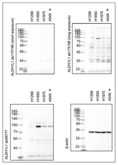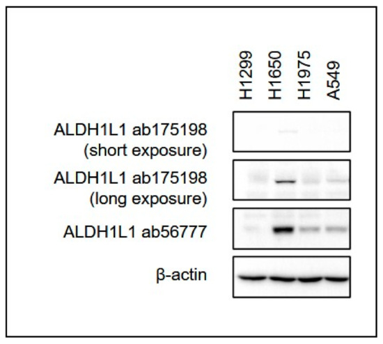 Two different antibodies against ALDH1L1 showed differential sensitivity against ALDH1L1 in various lung cancer cell lines (unpublished).
