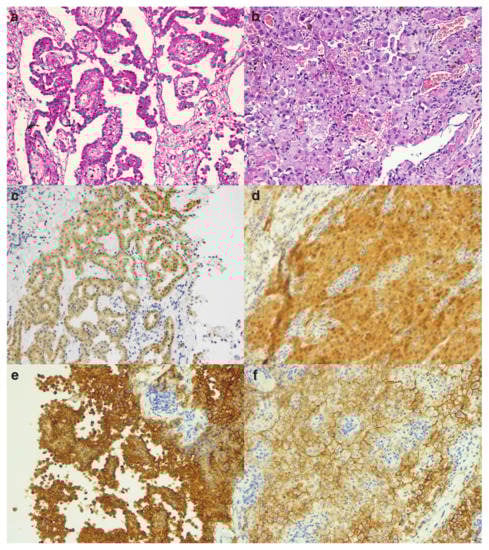 - Ordóñez, N.G. Value of immunohistochemistry in distinguishing peritoneal mesothelioma from serous carcinoma of the ovary and peritoneum, a review and update. Adv. Anat. Pathol. 2006, 13, 16–25. [Google Scholar] [CrossRef]