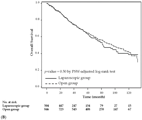 - Jeong, S.-Y.; Park, J.W.; Nam, B.H.; Kim, S.; Kang, S.-B.; Lim, S.-B.; Choi, H.S.; Kim, D.-W.; Chang, H.J.; Kim, D.Y.; et al. Open versus laparoscopic surgery for mid-rectal or low-rectal cancer after neoadjuvant chemoradiotherapy (COREAN trial): Survival outcomes of an open-label, non-inferiority, randomised controlled trial. Lancet Oncol. 2014, 15, 767–774. [Google Scholar] [CrossRef]