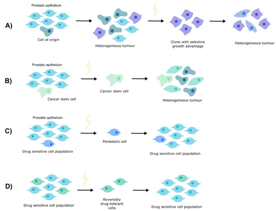 Understanding how PCa develops resistance to nADT necessitates an appreciation of resistance more broadly. There are a number of theories concerning tumorigenesis and treatment resistance (Figure 1).