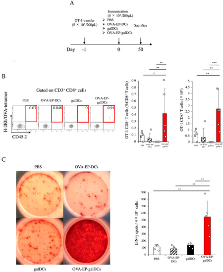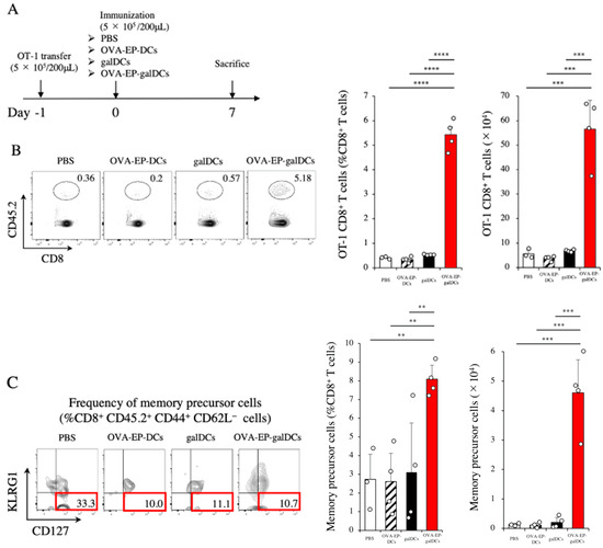 3.6. OVA-EP-galDC Vaccine Induced OT-1 CD8+ Memory T Cells in the Spleen