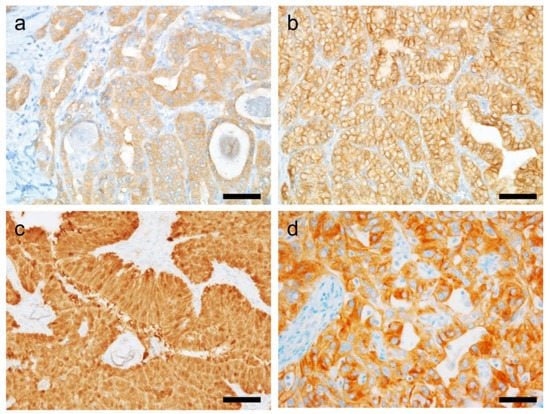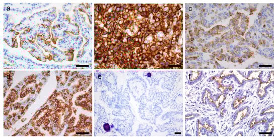 - Oh, E.J.; Bychkov, A.; Cho, H.; Kim, T.-M.; Bae, J.S.; Lim, D.-J.; Jung, C.K. Prognostic Implications of CD10 and CD15 Expression in Papillary Thyroid Carcinoma. Cancers 2020, 12, 1413. [Google Scholar] [CrossRef]