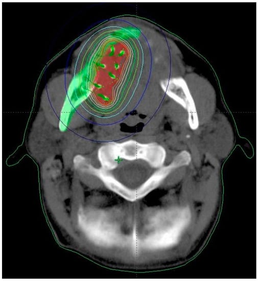 - Kovács, G.; Martinez-Monge, R.; Budrukkar, A.; Guinot, J.L.; Johansson, B.; Strnad, V.; Skowronek, J.; Rovirosa, A.; Siebert, F.A.; GEC-ESTRO Head & Neck Working Group. GEC-ESTRO ACROP recommendations for head & neck brachytherapy in squamous cell carcinomas: 1st update—Improvement by cross sectional imaging based treatment planning and stepping source technology. Radiother. Oncol. 2017, 122, 248–254. [Google Scholar] [CrossRef] [PubMed]