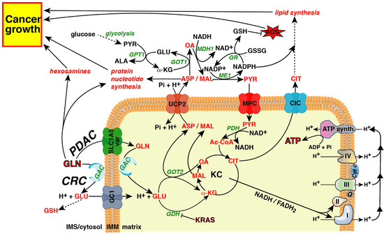 (2) UCP2 would be required in both tumor types, PDAC and CRC, where glutamine and glutamate transporters are expressed (Figure 2).