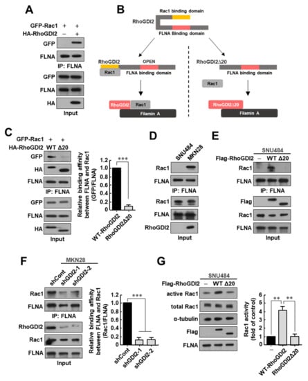 3.1. Interaction between RhoGDI2 and Rac1 Is a Prerequisite for RhoGDI2 to Interact with Filamin A