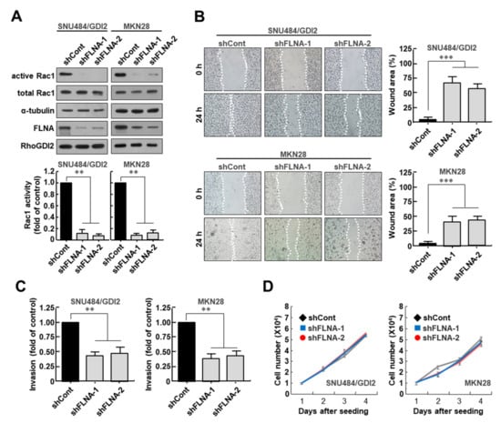 3.3. Filamin A Is Required for Rac1 Activation and the Invasive Ability of Gastric Cancer Cells