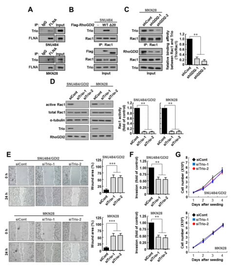 3.4. Trio Is Critical for Rac1 Activation and Invasive Ability of Gastric Cancer Cells