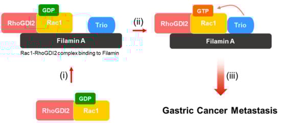 Kim H-J, Ryu K-J, Kim M, Kim T, Kim S-H, Han H, Kim H, Hong K-S, Song CY, Choi Y, et al. RhoGDI2-Mediated Rac1 Recruitment to Filamin A Enhances Rac1 Activity and Promotes Invasive Abilities of Gastric Cancer Cells. Cancers. 2022; 14(1):255. https://doi.org/10.3390/cancers14010255