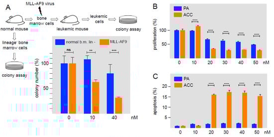 3.5. Bcr-TMP Suppresses the Proliferation of Murine MLL-AF9 Transformed AML Cells and of Patient-Derived ACC Cells
