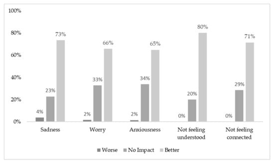 n = 15) reported experiencing issues with two feelings. Participants experiencing issues were asked how using CCv.2 had impacted their feelings. Over 60% felt that using CCv.2 positively impacted their feelings; fewer than 4% of young people felt that using CCv.2 negatively impacted their feelings of sadness, worry, and anxiousness (