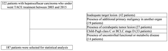 - Kadalayil, L.; Benini, R.; Pallan, L.; O’Beirne, J.; Marelli, L.; Yu, D.; Hackshaw, A.; Fox, R.; Johnson, P.; Burroughs, A.K.; et al. A simple prognostic scoring system for patients receiving transarterial embolisation for hepatocellular cancer. Ann. Oncol. 2013, 24, 2565–2570. [Google Scholar] [CrossRef] [PubMed]