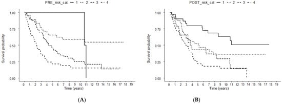 3.4. OS According to the Pre- and Post-TACE-Predict Models