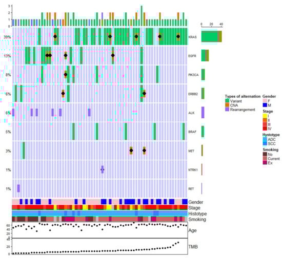 - Sacher, A.G.; Dahlberg, S.E.; Heng, J.; Mach, S.; Jänne, P.A.; Oxnard, G.R. Association Between Younger Age and Targetable Genomic Alterations and Prognosis in Non-Small-Cell Lung Cancer. JAMA Oncol. 2016, 2, 313–320. [Google Scholar] [CrossRef]