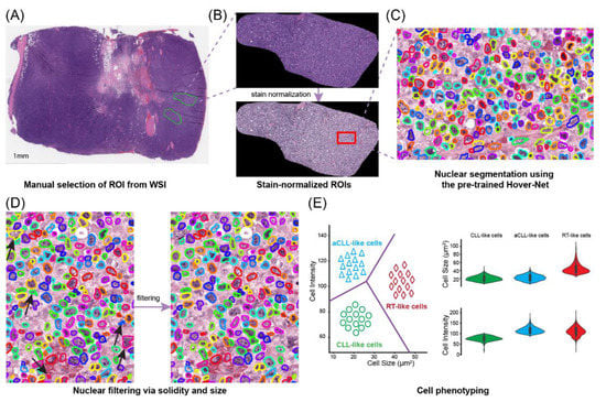 - El Hussein, S.; Chen, P.; Medeiros, L.J.; Jaffray, D.; Wu, J.; Khoury, J.D. Artificial intelligence strategy integrating morphologic and architectural biomarkers provides robust diagnostic accuracy for disease progression in Chronic Lymphocytic Leukemia. J. Pathol. 2021, 256, 4–14. [Google Scholar] [CrossRef]