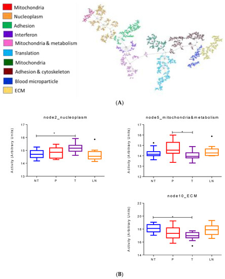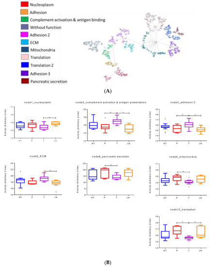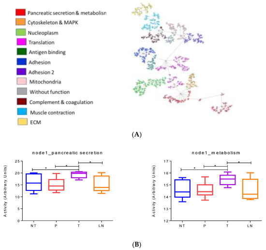 | T→LN | ↓ | Complement activation Adhesion 2 ECM | Pancreatic secretion Metabolism | |