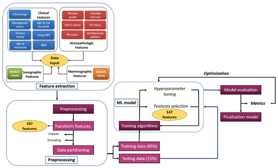 This study has several limitations. First, it was implemented in a single center, and external validation of the best-performing model was not performed. Doing so could have further demonstrated its generalizability. Second, it was a retrospective study based on a limited number of patients. Therefore, studies employing larger sample sizes are needed to confirm our results. On the other hand, a deep learning approach, such as a convolutional neural network, might outperform this model when combined with radiomic features (such as MMG image or magnetic resonance images) or genetic data to enhance the performance of our model.