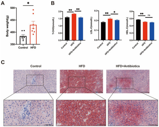 3.1. HFD Contributed to Weight Gain and Increased Lipid Levels in Rats