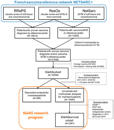 - Blay, J.-Y.; Soibinet, P.; Penel, N.; Bompas, E.; Duffaud, F.; Stoeckle, E.; Mir, O.; Adam, J.; Chevreau, C.; Bonvalot, S.; et al. Improved Survival Using Specialized Multidisciplinary Board in Sarcoma Patients. Ann. Oncol. 2017, 28, 2852–2859. [Google Scholar] [CrossRef]