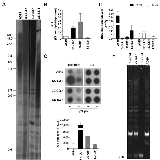 - Henson, J.D.; Cao, Y.; Huschtscha, L.I.; Chang, A.C.; Au, A.Y.M.; Pickett, H.A.; Reddel, R.R. DNA C-circles are specific and quantifiable markers of alternative-lengthening-of-telomeres activity. Nat. Biotechnol. 2009, 27, 1181–1185. [Google Scholar] [CrossRef] [PubMed]