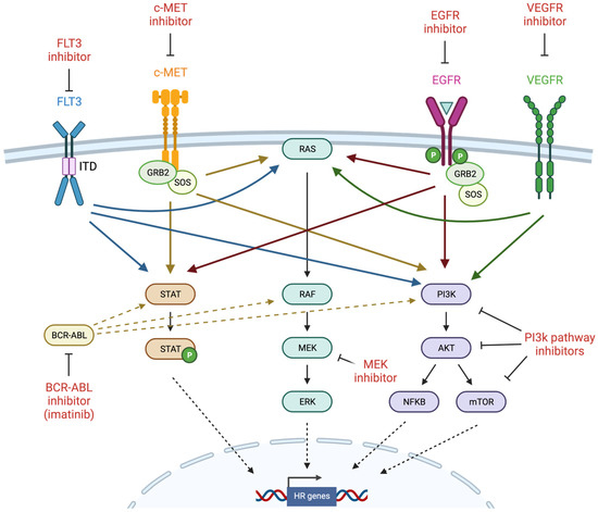 - Vena, F.; Jia, R.; Esfandiari, A.; García-Gómez, J.J.; Rodríguez-Justo, M.; Ma, J.; Syed, S.; Crowley, L.; Elenbaas, B.; Goodstal, S.; et al. MEK inhibition leads to BRCA2 downregulation and sensitization to DNA damaging agents in pancreas and ovarian cancer models. Oncotarget 2018, 9, 11592–11603. [Google Scholar] [CrossRef]