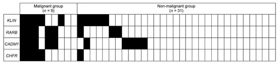 - Baba, S.; Baba, S.; Kato, K.; Long, N.K.; Hatano, Y.; Kimura, M.; Okano, Y.; Yamada, Y.; Shibata, T. Aberrant promoter hypermethylation of the CHFR gene in oral squamous cell carcinomas. Oncol. Rep. 2009, 22, 1173–1179. [Google Scholar] [PubMed]