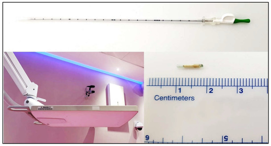 According to the manufacturer’s specifications, the lag time of the system is up to 100 milliseconds. Figure 1 shows the implantation needle, electromagnetic array, and Beacon® transponders (the figure is taken from [39]).