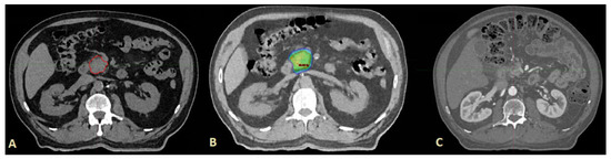 - Brunner, T.B.; Haustermans, K.; Huguet, F.; Morganti, A.G.; Mukherjee, S.; Belka, C.; Krempien, R.; Hawkins, M.A.; Valentini, V.; Roeder, F. ESTRO ACROP guidelines for target volume definition in pancreatic cancer. Radiother. Oncol. 2020, 154, 60–69. [Google Scholar] [CrossRef] [PubMed]