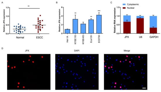 3.1. LncRNA JPX was Upregulated in ESCC