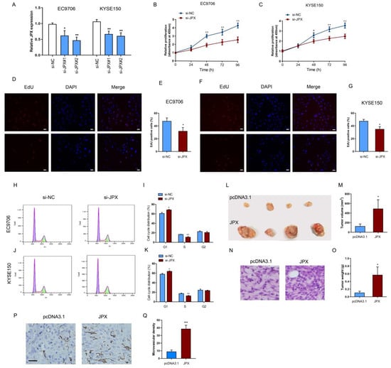 3.2. JPX Promoted Cell Proliferation and Tumor Growth in ESCC