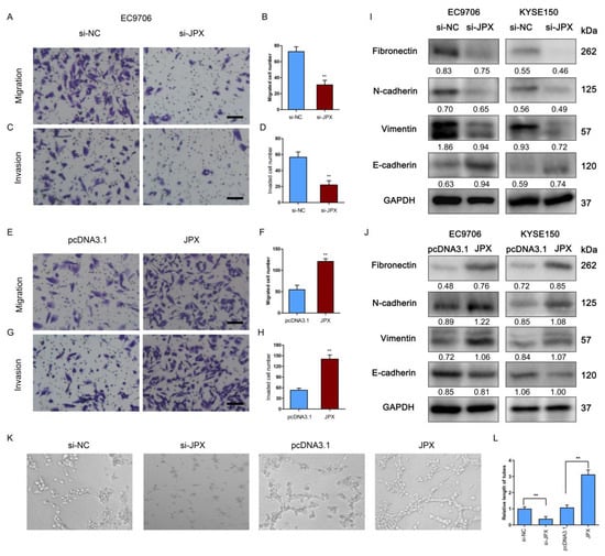 3.3. JPX Promoted ESCC Mobility In Vitro