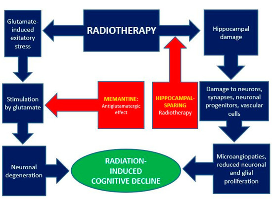 Therefore, in order to provide a summary of the evidence in this field, and to foster future research in this setting, the aim of this literature review is to present current evidence on the prevention of radiation-induced CD and particularly on the role of memantine.