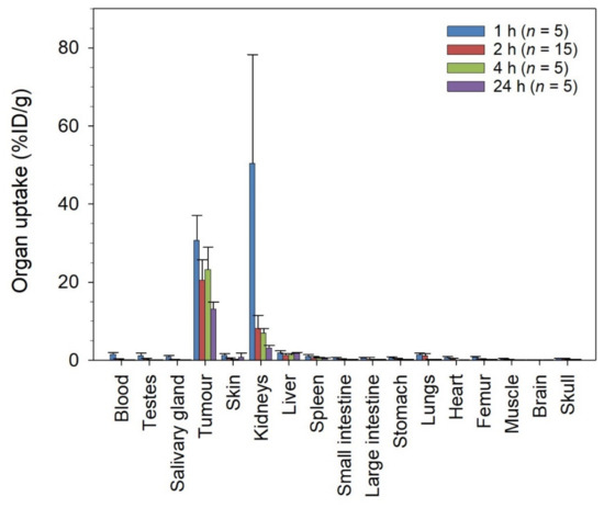 - Tschan, V.J.; Borgna, F.; Schibli, R.; Müller, C. Impact of the mouse model and molar amount of injected ligand on the tissue distribution profile of PSMA radioligands. Eur. J. Nucl. Med. Mol. Imaging 2022, 49, 470–480. [Google Scholar] [CrossRef] [PubMed]