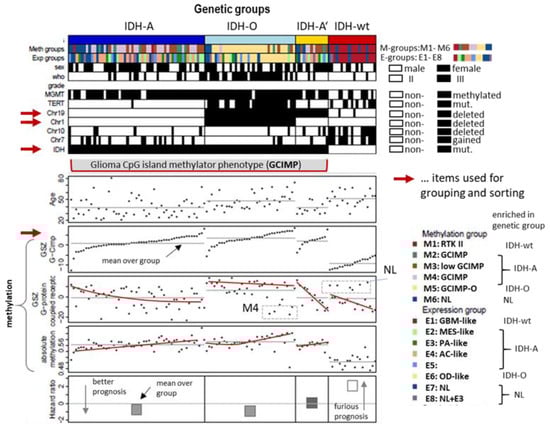 - Hopp, L.; Willscher, E.; Wirth-Loeffler, H.; Binder, H. Function Shapes Content: DNA-Methylation Marker Genes and their Impact for Molecular Mechanisms of Glioma. J. Cancer Res. Updates 2015, 4, 127–148. [Google Scholar]