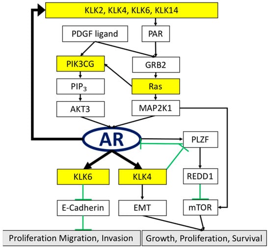 15. Jin, Y.; Qu, S.; Tesikova, M.; Wang, L.; Kristian, A.; Maelandsmo, G.M.; Kong, H.; Zhang, T.; Jeronimo, C.; Teixeira, M.; et al. Molecular circuit involving KLK4 integrates androgen and mTOR signaling in prostate cancer. Proc. Natl. Acad. Sci. USA 2013, 110, E2572–E2581. [Google Scholar] [CrossRef] [Green Version]
